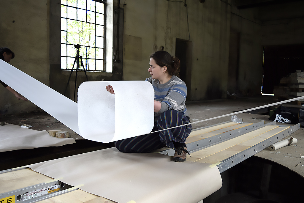 Instalace propojuje pâte de verre sklo a průmyslový papír v roli a zkoumá vztahy mezi oběma materiály, světlem a prostorem, pracuje přitom s kontrasty tíhy a lehkosti, pevnosti a křehkosti. Autorka vychází z historie obou materiálů, které v jejím pojetí symbolizují lidskou tvořivost, úsilí a hledání dokonalosti.