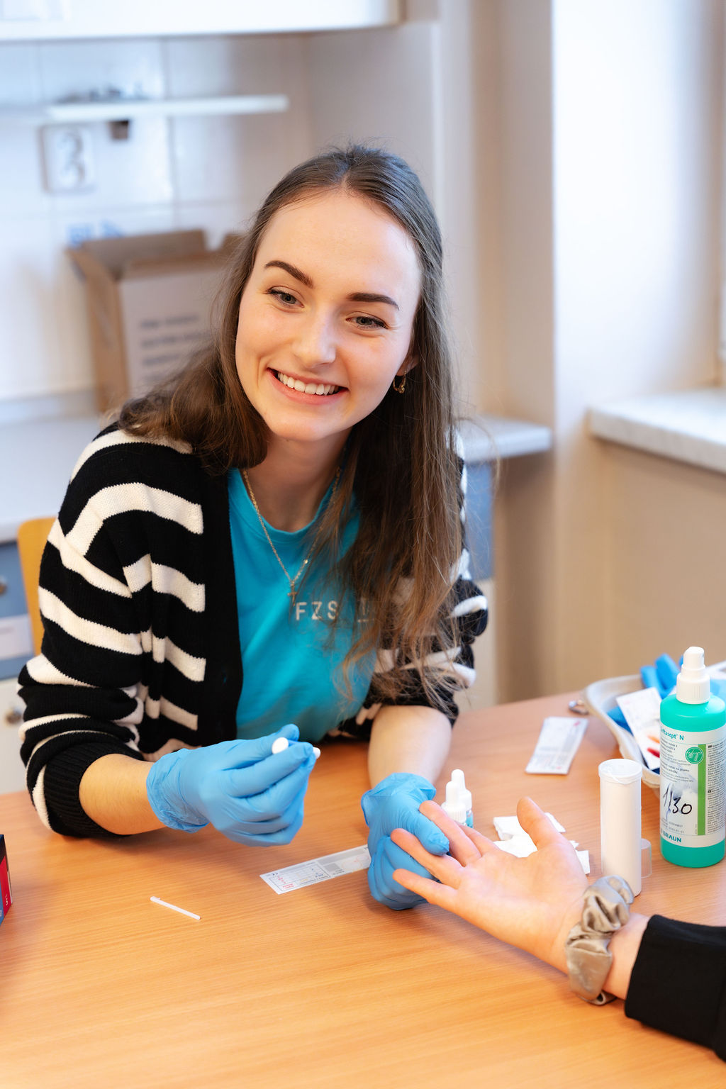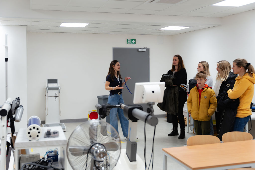 Pak už se skupiny vydávaly na prohlídky učeben, laboratoří a ateliérů. Na fakultě zdravotnických studií si návštěvníci mohli nechat zjistit krevní skupinu, cukr v krvi nebo oživování za pomoci virtuální reality. V laboratoři zpracování plastů fakulty strojní zase třeba poznali zblízka stroj, který umožňuje vyrobit až pětivrstvé fólie. „V rámci výzkumu kombinujeme různé biodegradabilní materiály a měříme jejich degradaci pomocí úbytku CO₂,“ přiblížil průvodce laboratoří. Ukázal také kelímek, při jehož výrobě byla použita kávová sedlina.