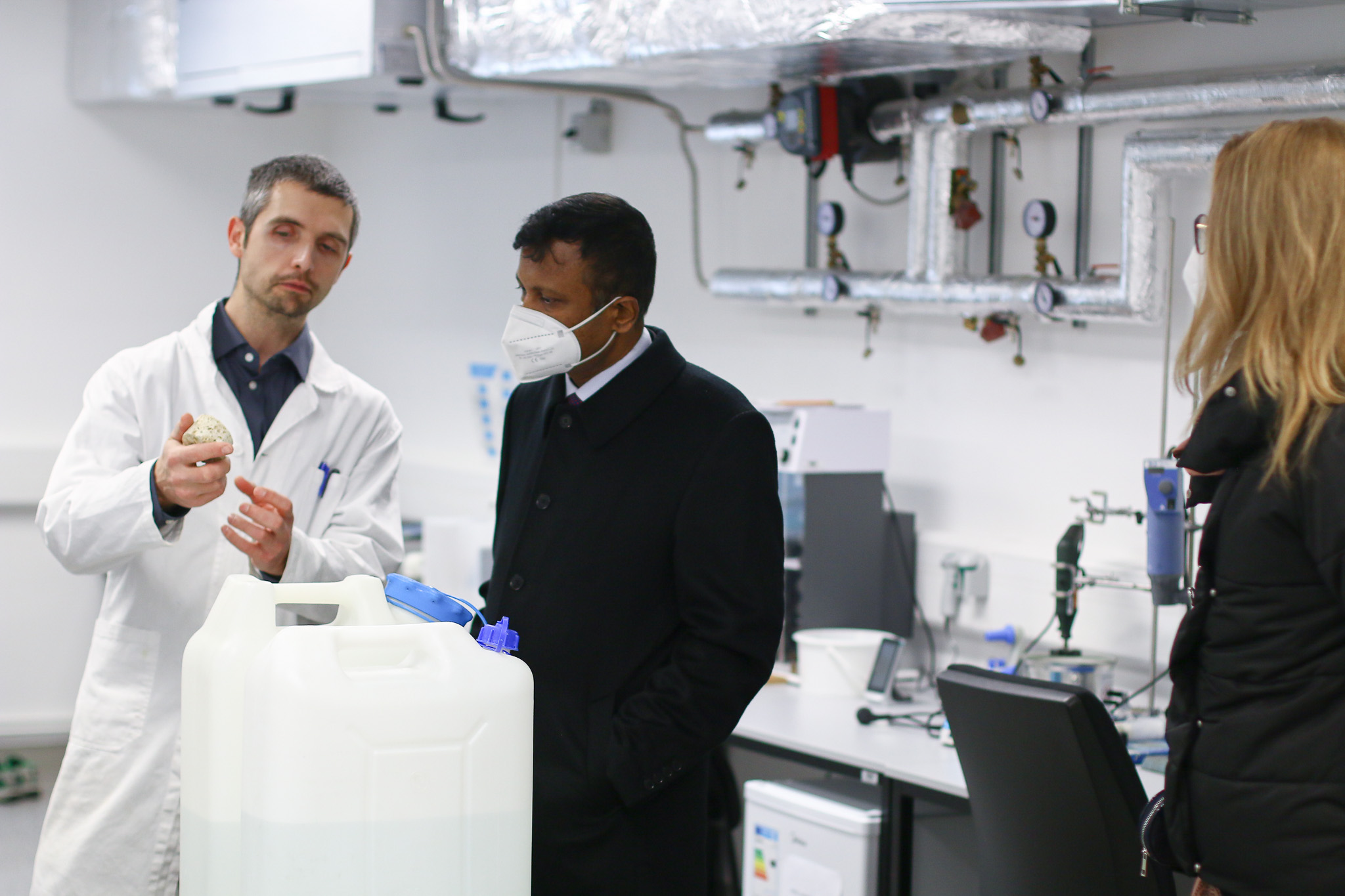 Velvyslanec navštívil laboratoř aplikované fotokatalýzy Fakulty mechatroniky, informatiky a mezioborových studií TUL (FM) v budově T, kde se testují samočisticí fotokatalytické nátěry. Slouží ochraně různých druhů fasád před působením mikroorganismů, jako jsou řasy nebo plísně. Podstata ochrany spočívá v tom, že UV složka slunečního světla aktivuje nanočástice obsažené v nátěru a fotokatalytická reakce hubí nežádoucí mikroorganismy. Fotokatalýza navíc mikroorganismy kompletně rozloží, proto se na povrchu fasád nemůže vytvořit biofilm.