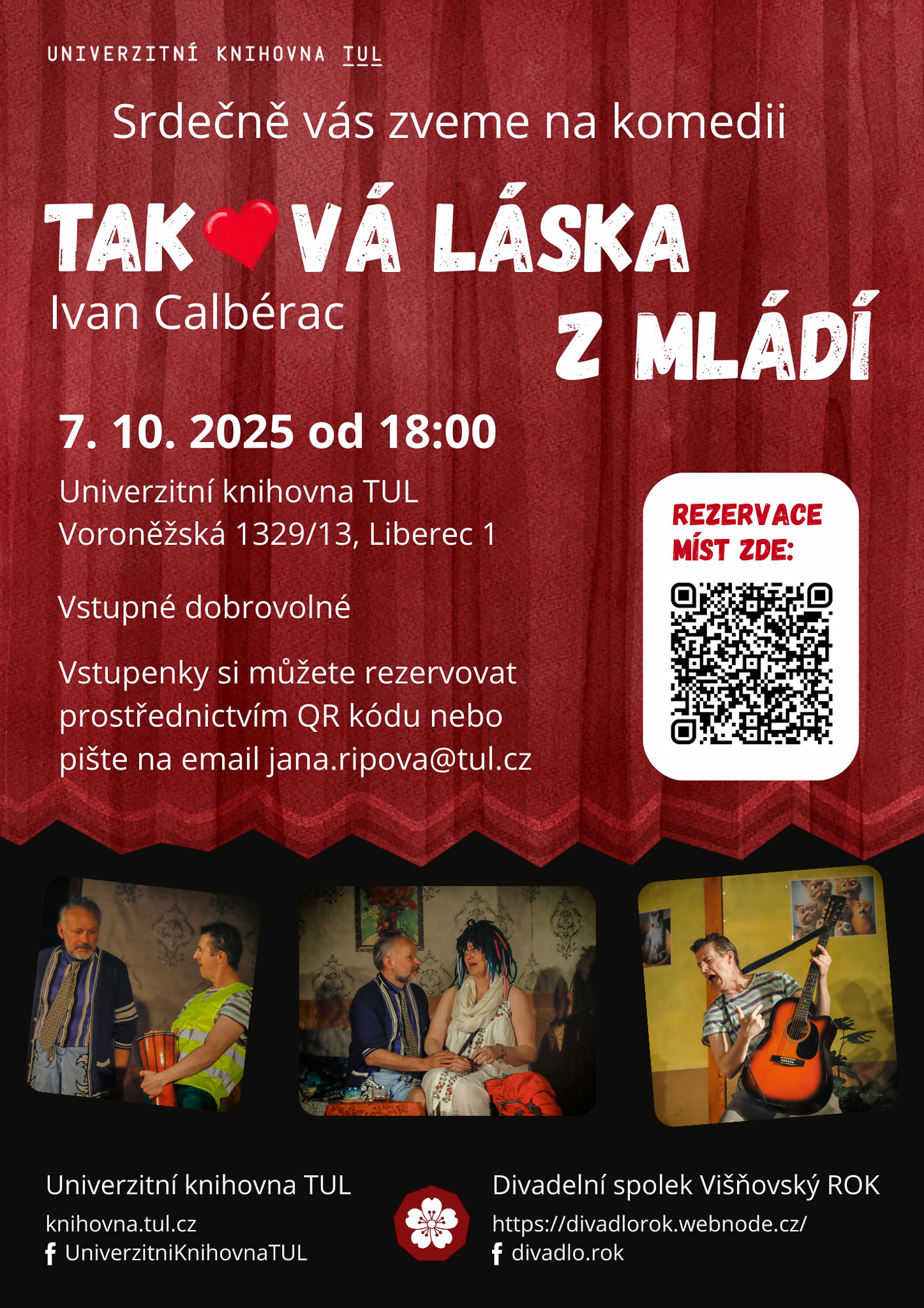 Vstupenky si rezervujte prostřednictvím tohoto odkazu nebo pište na email jana.ripova@tul.cz.