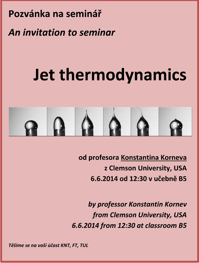 Seminář předního světového odborníka na smáčivost polymerních mikro a nanovláken začíná ve 12.30 v učebně B5.
