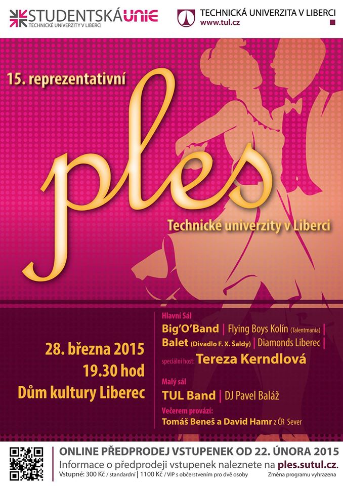 Patnácté vydání Plesu TUL se koná v libereckém domě kultury od 19.30 hodin. Více informací i k předprodeji a prodeji lístků na https://www.facebook.com/events/1529517647322611/.