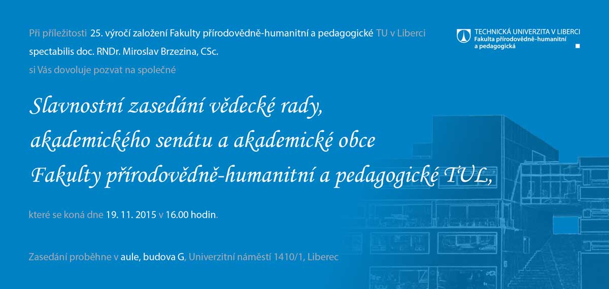 Slavnostní zasedání se koná u příležitosti 25. výročí založení Fakulty přírodovědně-humanitní a pedagogické TUL.