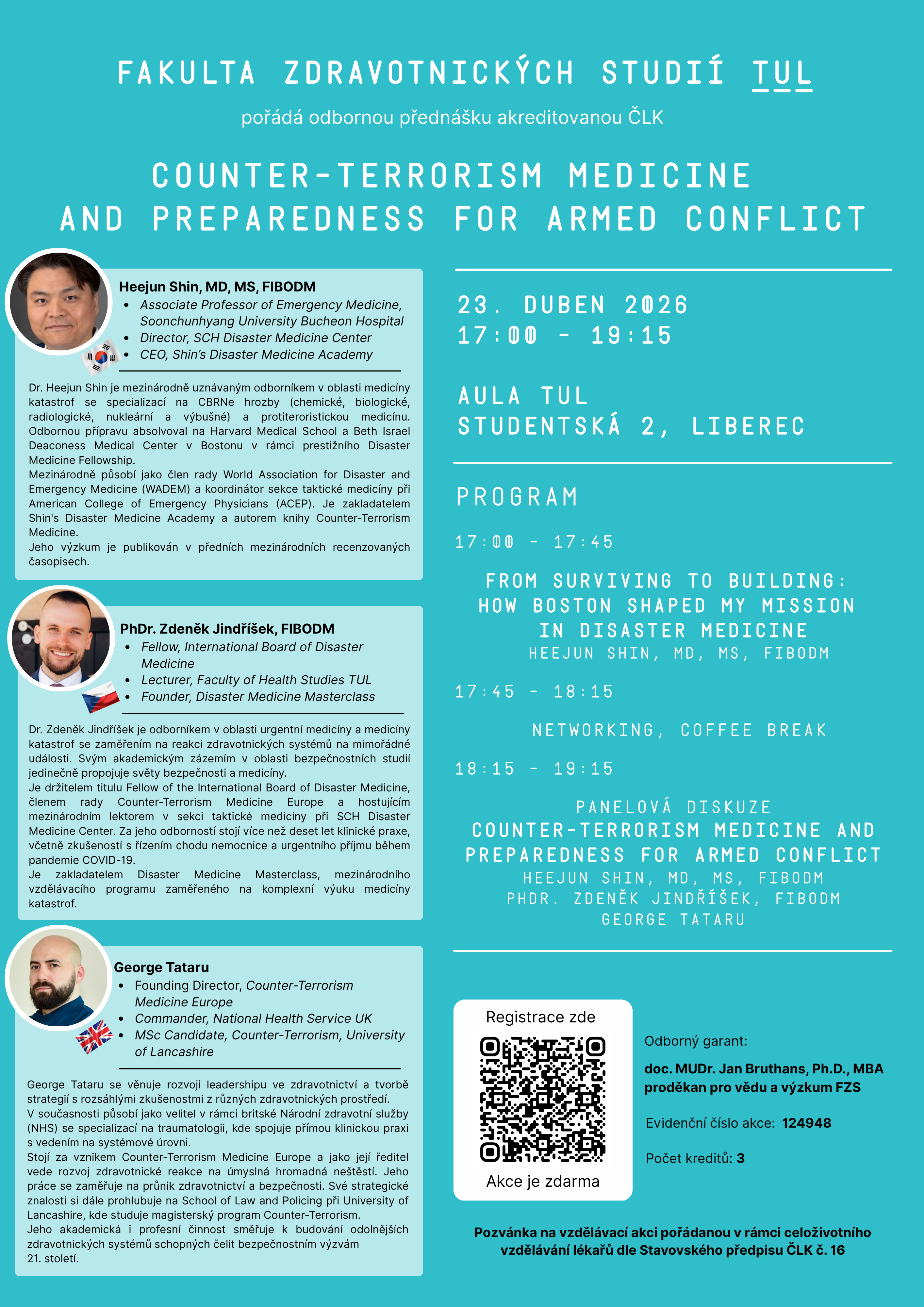 Přijďte si poslechnou přednášku se zahraničními speakry a diskutovat o aktuálních tématech v urgentní medicíně a medicíně katastrof.