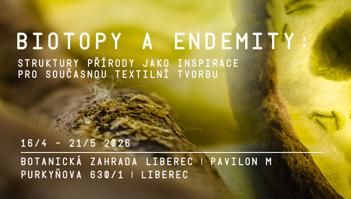 Katedra designu Fakulty textilní Technické univerzity v Liberci představuje na výstavě experimentální textilní tvorbu studentů bakalářského studia oboru Návrhářství inspirovanou přírodními biotopy a endemickými organismy. Výsledkem je kolekce autorských textilií, které zkoumají strukturu, povrch a materiálové vlastnosti textilních ploch.