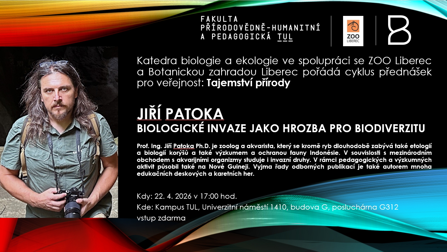 Katedra biologie a ekologie FP TUL ve spolupráci se ZOO Liberec a Botanickou zahradou Liberec zve na cyklus populárně vědeckých přednášek pro veřejnost nazvaný Tajemství přírody.