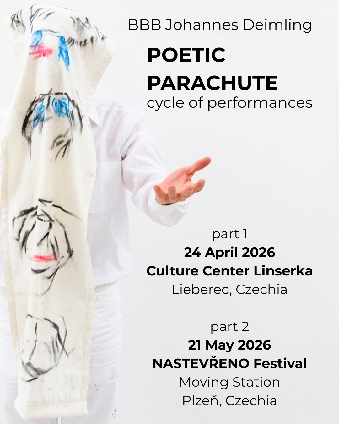 Během vernisáže proběhne umělecká performance německého umělce BBB Johannese Deimlinga.