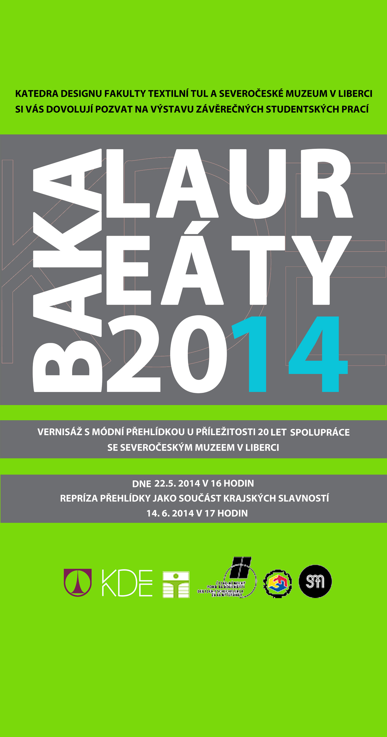 Přehlídka závěrečných prací studentů návrhářství Bakalaureáty 2014 nabývá letos významu také jako oslava 20. výročí spolupráce katedry designu Fakulty textilní TUL se Severočeským muzeem v Liberci. Čtvrteční vernisáž zároveň zahájí první výstavu po rekonstrukci vnitřních prostor a znovuotevření muzea. Bakalureáty 2014 tam budou k vidění do 14. června.