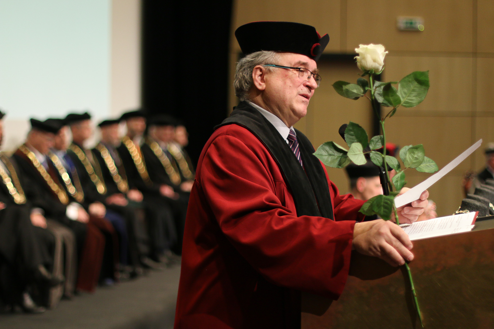 Předseda akademického senátu pak připomněl průběh volby nového rektora a docenta Aleše Kocourka krátce představil. „Do čela univerzity přichází osobnost, která univerzitu do hloubky zná, má za sebou prokazatelné výsledky a má zkušenosti s vedením fakulty i s prorektorskou prací. Zároveň se teší široké podpoře napříč akademickou obcí – ve volbách získal velmi silný mandát,“ zdůraznil docent Hotař.