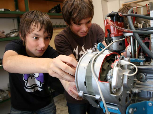 Na programu Školy mladých konstruktérů je i exkurze do výrobního závodu, a práce v laboratoři, kde se potenciální konstruktéři seznámí s principy konstrukce vozidla a se způsoby měření na motorech vozidlech.